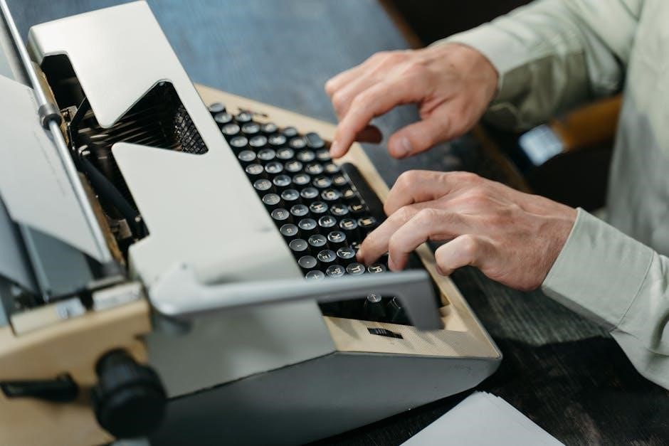 Typewriter manuals are essential for maintaining and optimizing the performance of typewriters; They provide clear instructions for operation, maintenance, and repair, ensuring users can troubleshoot common issues effectively․ These guides help extend the lifespan of typewriters by offering tips for cleaning, lubricating, and replacing parts․ For vintage models, manuals are crucial for restoring functionality and preserving historical integrity․ They also empower users to perform DIY repairs, reducing reliance on professional services and saving costs․ Overall, typewriter manuals are indispensable resources for enthusiasts, collectors, and writers seeking to keep their machines in optimal working condition and maintain their timeless appeal․